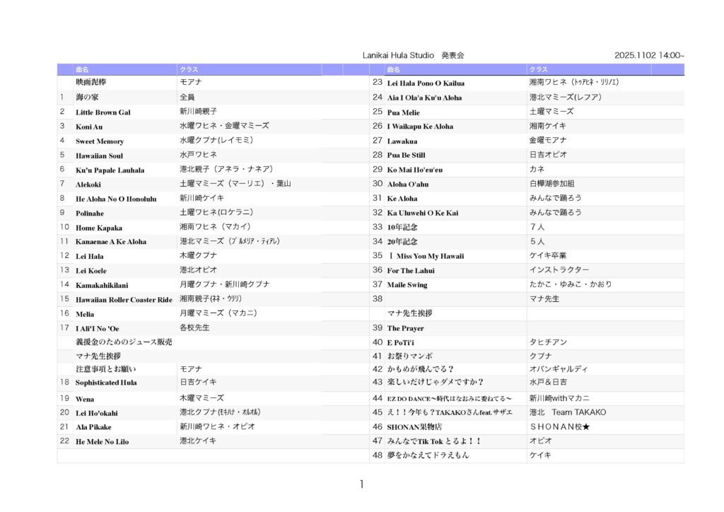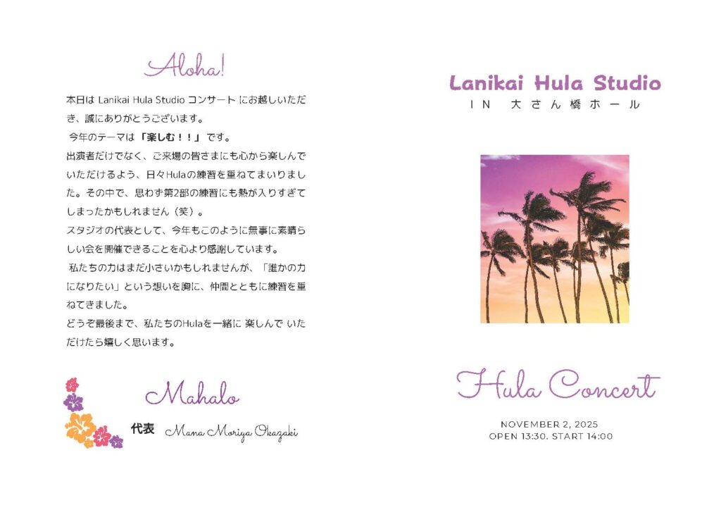 11月2日に開催する大桟橋 ラニカイコンサートについて、プログラムのお知らせです。